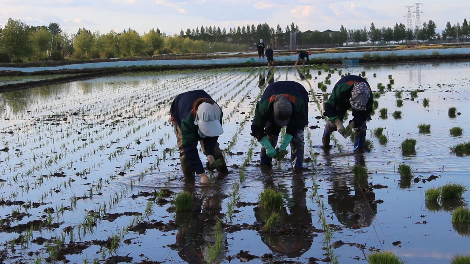 插秧進(jìn)行時(shí):天空之境披“綠”裝,秋然米業(yè)插秧忙